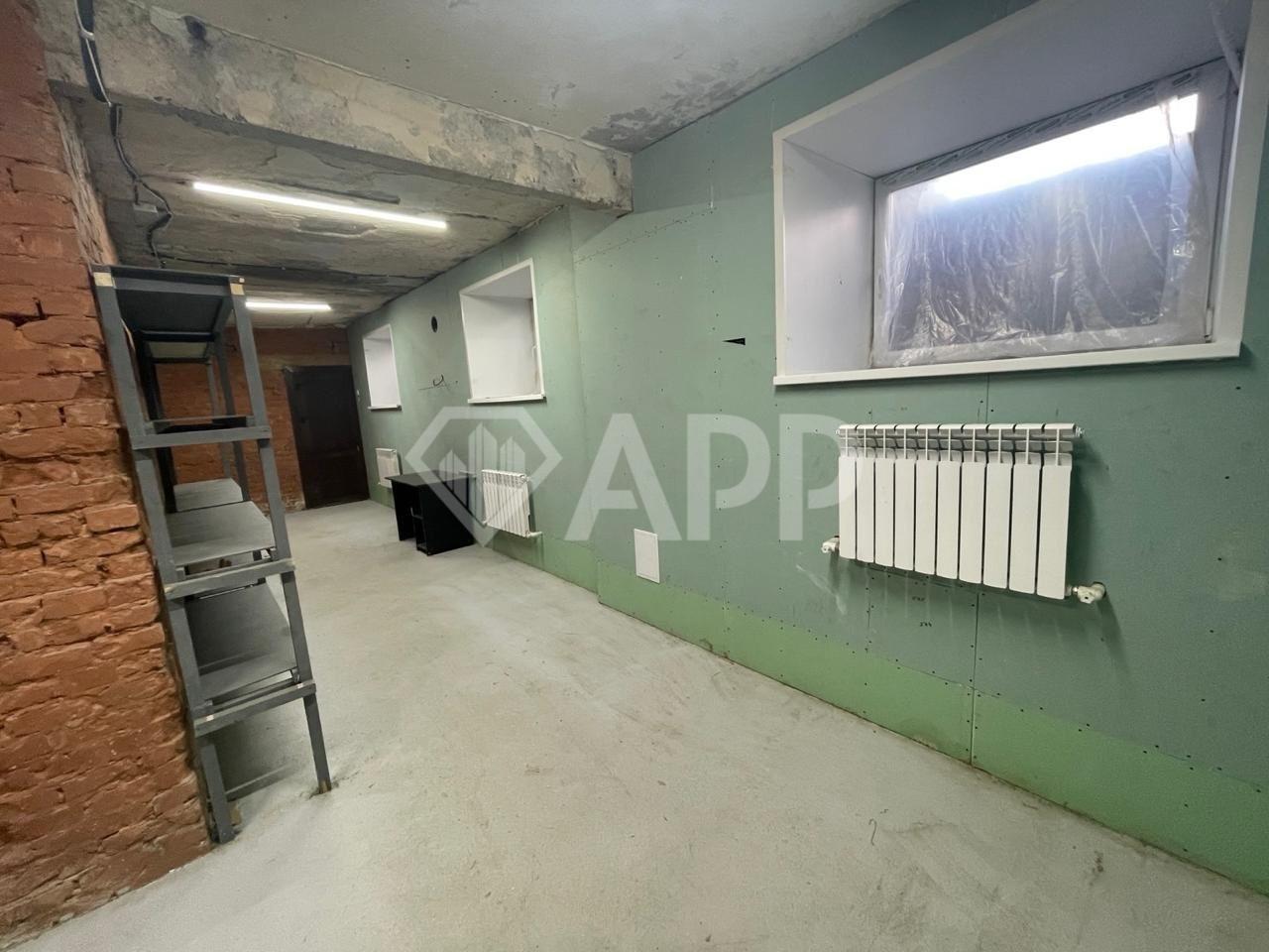 Высокий цоколь с окнами рядом с метро.